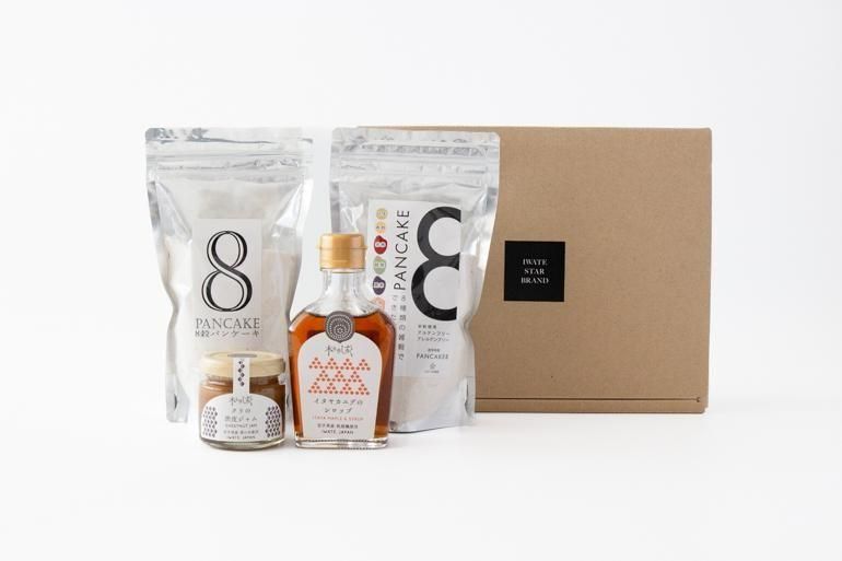 軽米町産雑穀を8種類ブレンドした、雑穀の旨みが楽しめるパンケーキミックスは、小麦と米粉の二種類を。それぞれの味わいを楽しんでいただけます。
